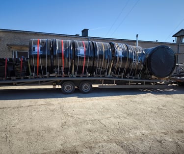 Kubilus pristatome kietašoniu sunkvežimiu arba vienašėmis ir dviašėmis priekabomis atsižvelgiant į kubilų kiekį, pristatymo vietą bei pravažumą.